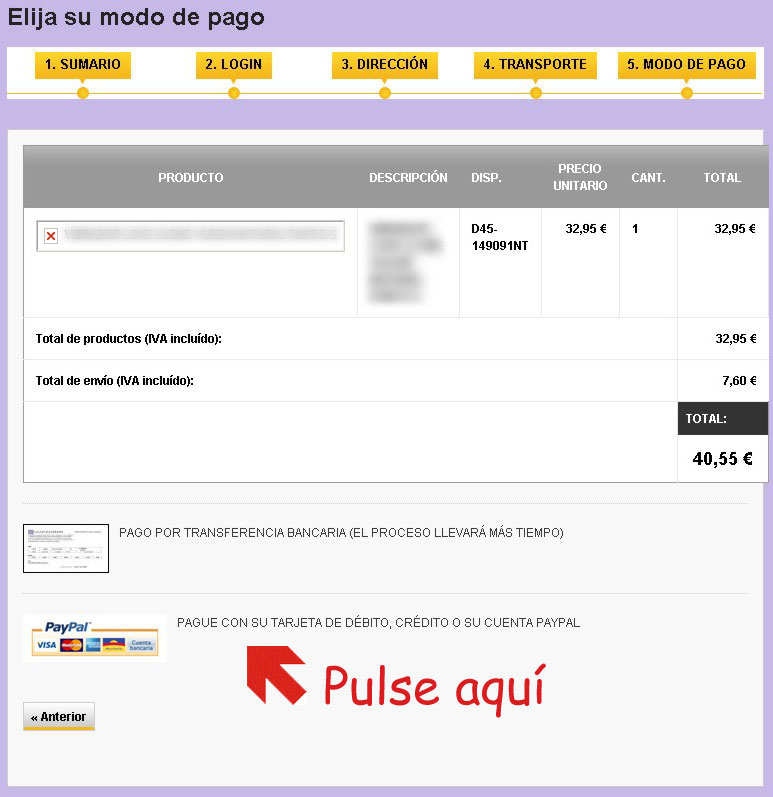 Esta opción te aparecerá en la pasarela de pago de PayPal.